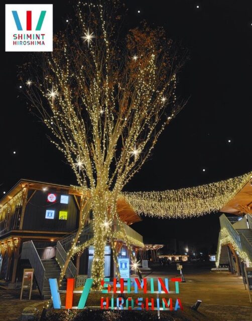 この冬、SHIMINT HIROSHIMAでは幻想的なイルミネーションが来場者を迎えます。メインエントランスには、建物の間に広がる「光の天の川」と、星のように輝く大きな木が登場。夜空と調和したあたたかな光が、公園全体を包み込みます。園内の建物にもイルミネーションが施され、冬ならではの特別な空間を演出。SNS映えするフォトスポットとしても楽しめる、冬の思い出づくりにぴったりのイルミネーションです。